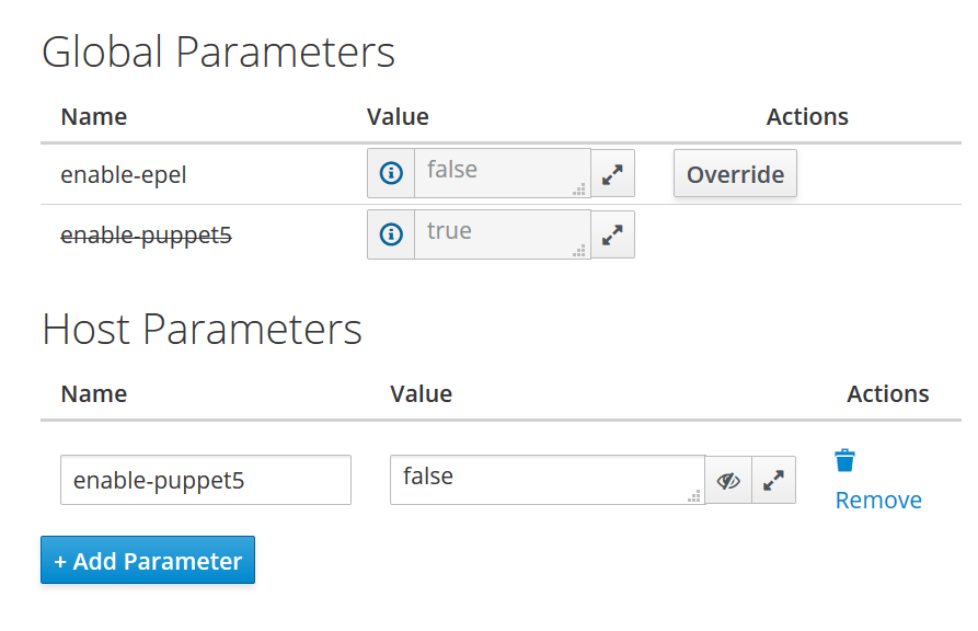Once the Ansible roles have been imported into Satellite, roles can be assigned to hosts – can be during or post provisioning of hosts. Parameters can be passed along to the Ansible roles through host parameters or global parameters.